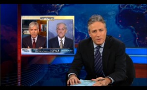 Sure, like everyone else, Jon Stewart spent plenty of time discussing the $10,000 Mitt Romney bet with Rick Perry, but the host also returned to a familiar narrative: Ron Paul may have "killed it" at the debate, but what kind of press did he get from it?