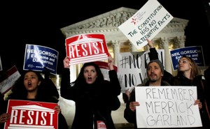 Less than an hour after the president announced his appointment of Judge Neil Gorsuch, demonstrators gathered to voice their disapproval.