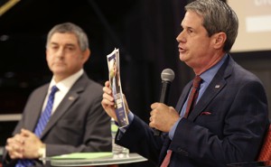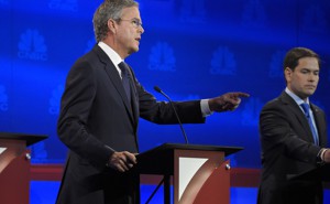 The establishment and the outsider tangled Tuesday night, illustrating just how far apart the party’s rival wings are on the issue.