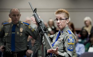 A lawsuit brought by families of victims blames the marketing of military-style guns to civilians.