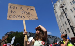 As President Donald Trump spent the second day of his U.K. visit with Prime Minister Theresa May, thousands of people gathered in London to march in characteristically creative style.