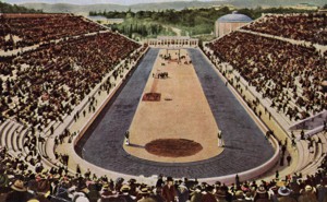 The first modern Olympic games took place in Athens sixty years ago in a stadium holding seventy-five thousand. The American hurdler Thomas P. Curtis won the Gold Medal in his event; he also found time to make notes of what happened.