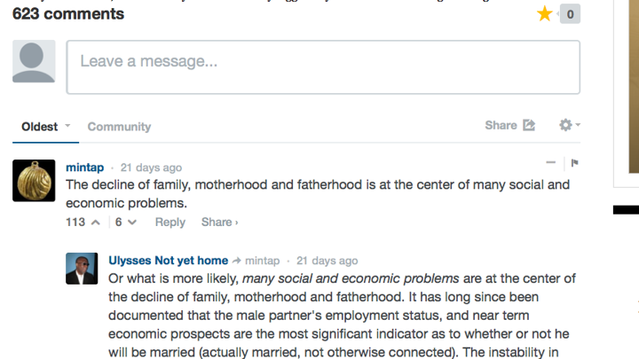 *Some move in both directions at the same time. Like this one. Have you tried to write a comment for James Fallows recently? You can't. There is no Fallows comment section. On the other hand, Ta-Nehisi Coates might have the most engaged and erudite commenter community on the Internet. Our boss Bob Cohn unpacked the Atlantic's commenter philosophy this year.