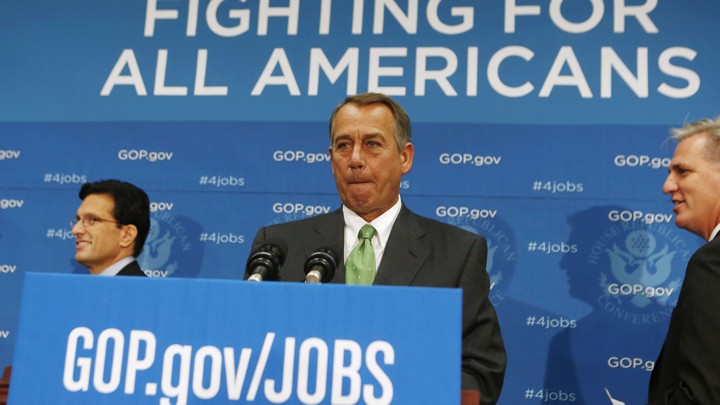 This was, of course, nonsense. There was never any evidence that too much uncertainty, rather than too little demand, was why the recovery was and continues to be stuck in stall speed. If anything, the evidence points the other way. As I've pointed out before, more uncertainty has actually been associated with more job growth since 2008, probably because stimulus shows up as "uncertainty." But say what you want about the merits of blaming uncertainty, at least it was an ethos. Here's how Boehner described it in a speech to the Economic Club of New York in May 2011: