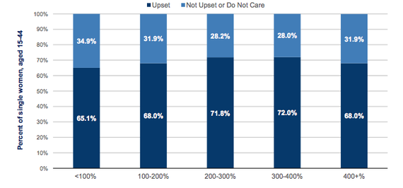 When it comes to the notion that poorer women may be less worried about getting pregnant than their more affluent counterparts (leading them to be more lax in contraception use)—the answer isn’t cut and dry. Across all income groups, the study asked women who were not trying to conceive whether they’d be upset if they did get pregnant. And for each income level the results were pretty much the same, with about one in three women saying they would not be all that upset if they got pregnant, while two-thirds considered such a possibility very upsetting. According to Reeves, intent to get pregnant—or the level of motivation not to—is particularly hard to assess. “You will find some people who are saying, ‘I never want to get pregnant, but I'm not using contraception,’” he says.