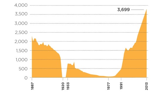 Policies like tax exemptions and the absence of distribution restrictions may be dry explanations for the flourishing of American craft beer, but the history of American breweries in the past 100 years has been shaped more than anything else by regulation. The ultimate regulation, of course, was Prohibition, which kicked in in 1920 and put 1,568 breweries out of business. Most of the roughly 700 that survived were squashed by a few large-scale brewers, who favored policies that demolished competition. (In 1923, the president of Anheuser-Busch wrote an urgent letter to President Calvin Coolidge, calling saloons that sold their own beer without a distributor "objectionable.")