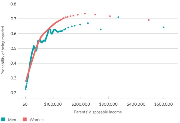 How Likely Men and Women Are to Get Married, Based on Their Parents’ Income
