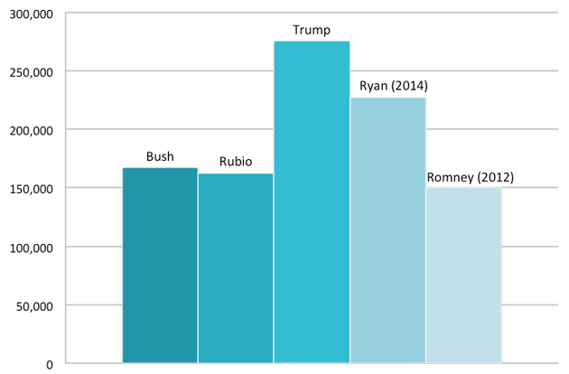 Rubio’s plan would cut taxes by $162,000 for the top 1 percent and $932,000 for the top 0.1 percent, while reducing overall revenue by almost $7 trillion. Compare that to plans of his fellow candidates and GOP luminaries: