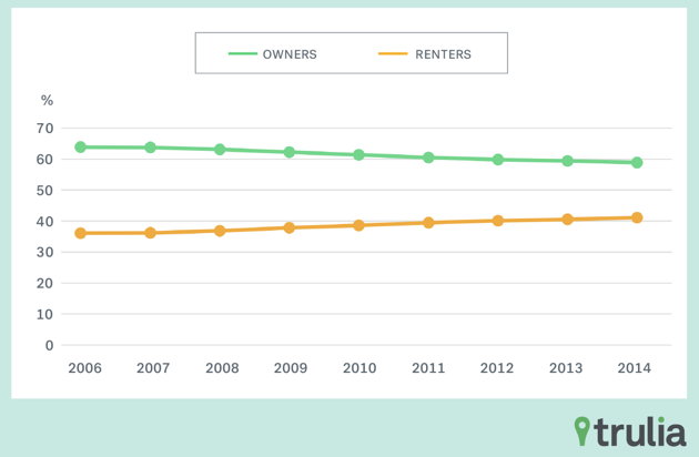 Percentage of American Households That Rent or Own, 2006-2014