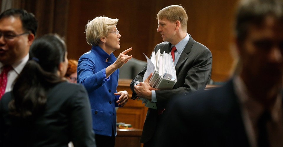The Consumer Financial Protection Bureau—which was brainchild of Senator Elizabeth Warren—was created in the wake of the financial crisis by the Dodd-Frank Act, the legislation meant to reform the financial sector and protect the public from predatory and dangerous practices. Title X, the section of the Act which calls for Bureau’s formation, states that a director will be appointed by the President and confirmed by the Senate. The Bureau then has the ability to “administer, enforce, and otherwise implement federal consumer financial laws, which includes the power to make rules, issue orders, and issue guidance.” But in those endeavors, the Bureau and its director are not directly subject to oversight from any of the branches of government. The autonomy of the CFPB is, in some ways, singular. But in others, the setup of the CFPB is similar to that of the Federal Reserve. The Fed’s goals and purpose—to establish maximum employment and stable prices—are set by Congress, but its funding and operation remain autonomous in order to prevent being swayed by political pressure.