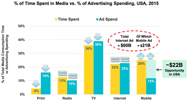 Where is all of this money going? To tiny plates of glass. Two earnings reports this week offered a microcosmic glimpse of the shift. On Wednesday morning, the New York Times announced that print ad revenue fell 19 percent for the quarter. Nine hours later, on Wednesday afternoon, Facebook announced that its digital advertising revenue rose 59 percent. There is no direct comparison between the Times, a newspaper that pays luxuriously for reporters and editors, and Facebook, an attention arbitrage network that induces content from unpaid maker-viewers. But it illustrates the larger story most dramatically told by venture capitalist Mary Meeker’s annual slideshow: Audiences are migrating from print bundles to mobile networks and aggregators.