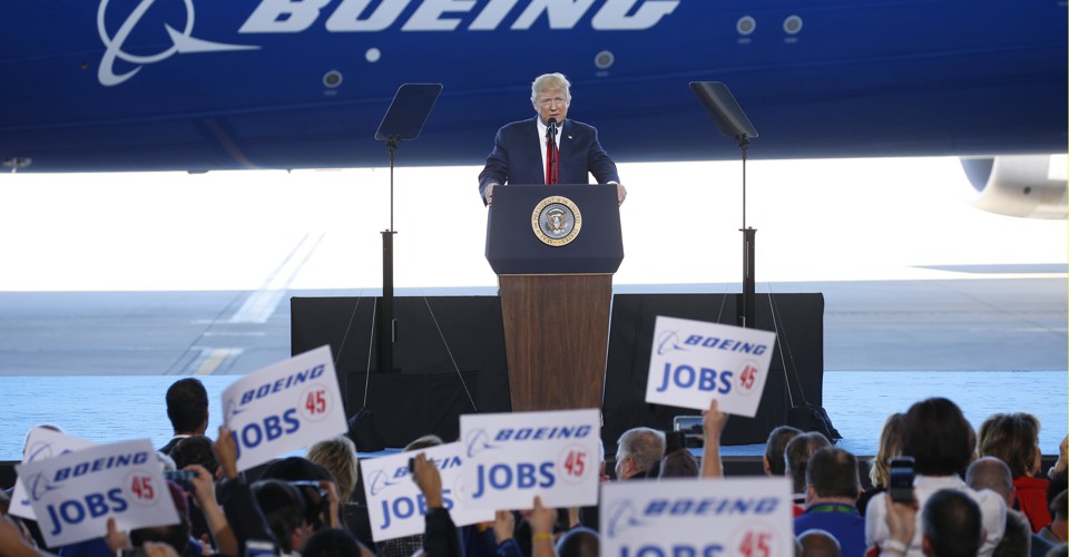 Donald Trump traveled to a Boeing plant in South Carolina on Friday, ostensibly to poke around the company’s new jet and sit in the cockpit. But his real interest was the few thousand workers assembled in the hanger, and the television cameras behind them.