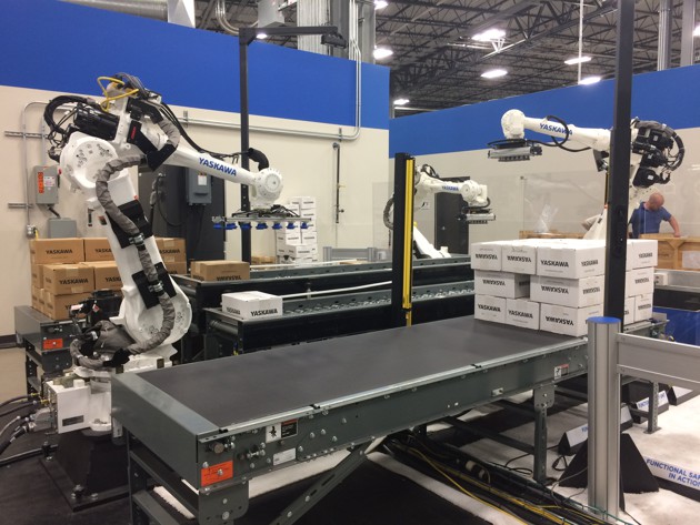 My visit to the Yaskawa factory illustrated these positives. I talked to a 25-year-old process engineer named Greg Smith, who has a bachelor’s degree in mechanical engineering and is finishing up his master’s in electrical engineering. He showed me an automated vehicle that communicated with a humanoid robot to move parts around a factory floor, as the robots checked the parts to make sure they were made correctly, and retooled those that were not. We walked by a Yaskawa robot that could stack objects on top of one another, and one that took items off an assembly line and packed them in a box. Another robot—one of Yaskawa’s most popular products—welds metal parts together faster and more accurately than humans can.