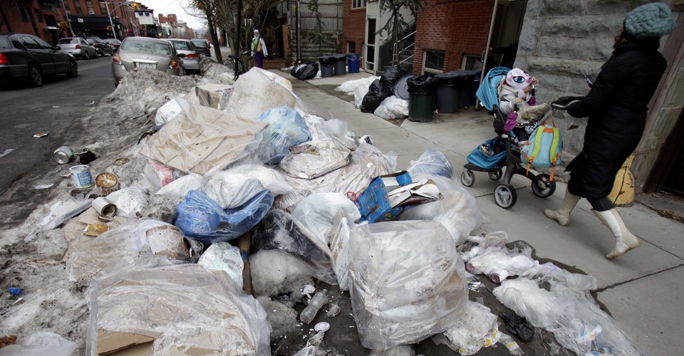 But before garbage is carted off, it’s a quality-of-life issue on the ground. With bags heaped high, curbs and sidewalks can become canyons through towering landscapes of rubbish. On humid days, an acrid, prickly smell settles on certain corners, and the festering pylons have given rise to a whole genre of gripes. The noxiousness has become a local character trait. “Hot garbage wind, and other things that smell in the summer,” read one Gothamist headline in 2016. On a list of “22 Smells New Yorkers Will Never Forget,” BuzzFeed offered a more detailed taxonomy of the trash itself, differentiating between the maleficence of recently deposited stacks and the juicy lots that had been marinating, rotting, and baking in the midday sun.