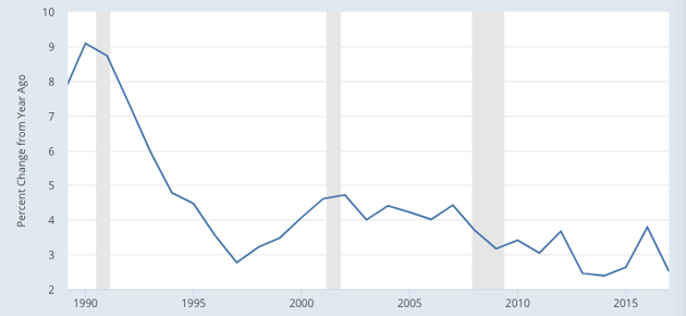 If health care is, as Buffett describes, a hungry tapeworm, the parasite isn’t growing as fast as it used to. The rate at which medical costs increase each year has, with some exceptions, generally declined since the 2000s. Between 2010 and 2013, the average annual growth rate in health expenditures was scarcely higher than that of GDP. As the economy picked up in 2014 and 2015, medical-cost inflation turned up again.