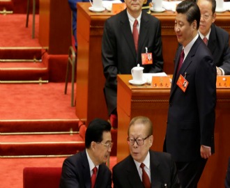 China's Vice President Xi Jinping walks behind as China's outgoing President Hu Jintao (L) talks with former President Jiang Zemin at the beginning of the opening ceremony of 18th National Congress of the Communist Party of China at the Great Hall of the People in Beijing, November 8, 2012. (Jason Lee/Reuters)