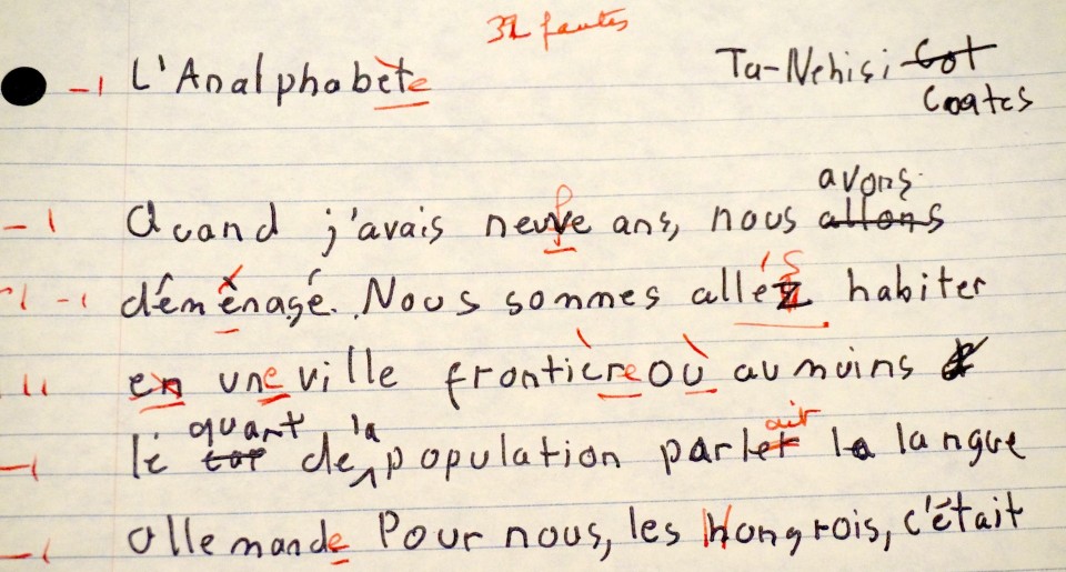 I was there to improve my French. My study consisted of four hours of class work and four hours of homework. I was forbidden from reading, writing, speaking, or hearing English. I watched films in French, tried to read a story in Le Monde each day, listened to RFI and a lot of Barbara and Karim Oeullet. At every meal I spoke French, and over the course of the seven weeks I felt myself gradually losing touch with the broader world. This was not a wholly unpleasant feeling. In the moments I had to speak English (calling my wife, interacting with folks in town or at the book store), my mouth felt alien and my ear slightly off.