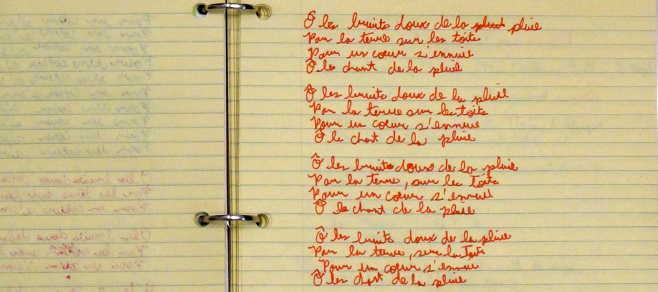Scholastic achievement is sometimes demeaned as the useless memorization of facts. I suspect that it has more to offer than this. If you woke my French literature professor at 2 a.m., she could recite the deuxième strophe of Verlaine’s “Il Pleure Dans Mon Coeur.” I suspect this memorization, this holding of the work in her head, allowed her to analyze it and turn it over in ways I could only do with the text in front of me. More directly, there is no real way for an adult to learn French without some amount of memorization. French is a language that obeys its rules when it feels like it. There is no unwavering rule to tell you which nouns are masculine, or which verbs require a preposition. Memory is the only way through.