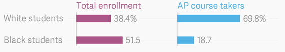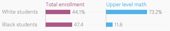 In the 2011-12 school year, for example, black and Latino students represented 16 percent and 21 percent of high school enrollment nationwide, respectively, according to the education department. But they were only 8 percent and 12 percent of the students taking the advanced-level math class calculus.