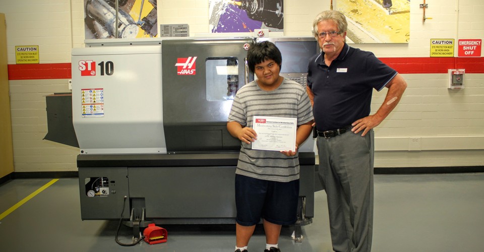 At Indian Springs High School, Clarke showed me a fully outfitted machine-tool work shop, in which students are trained and then certified for highly-skilled trades. The photo at the top of this page was a recognition of one 14-year old for completing a high-level machine-tool course.