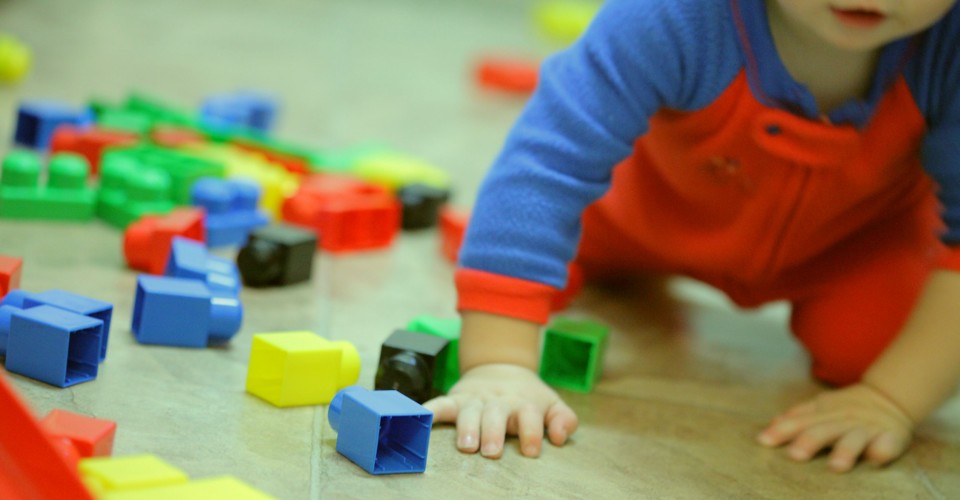 Over there to play with a toy. Up on the child-sized table wedged into the corner. Across the room to touch base with mom, chattering the entire time.