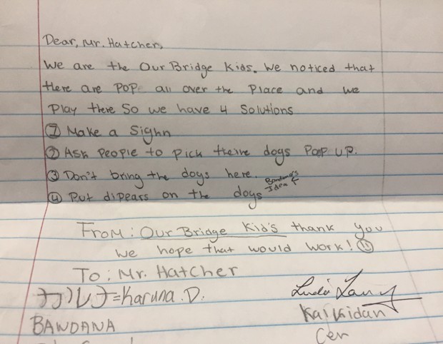 The staff also designs projects to help the kids apply the language skills they’ve been working on, as well as explore topics they wouldn’t necessarily learn about in school. Ganzo is particularly proud of a petition the kids drafted to the owner of a nearby park, suggesting solutions for the dog poop they had encountered while playing there. I took a picture of a part of their letter (please note suggestion #4):