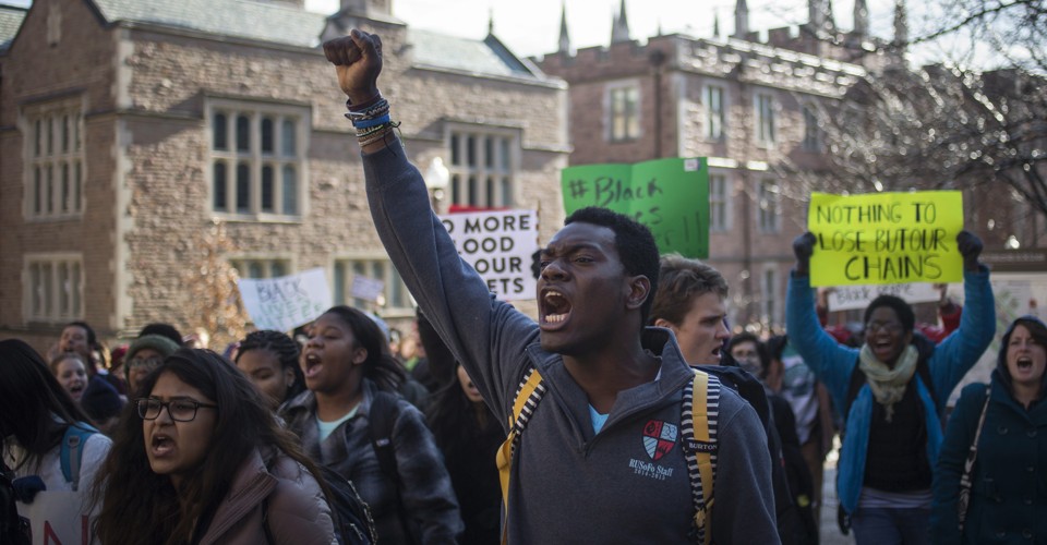 The annual American Freshman Survey, conducted by the Higher Education Research Institute at UCLA, polled 141,189 full-time students at nearly 200 colleges. Students across the country have been protesting racial injustice in their communities and responding to national conversations after high-profile shootings in places like Ferguson, New York City, and Baltimore, as well as highlighting problems such as campus sexual assault and college affordability. “Perhaps connected to the increased activism among college and high school students over the past year, first-time, full-time college students in 2015 report substantially greater likelihoods of participating in student protests and demonstrations while in college compared to their peers who entered last year,” the study says.