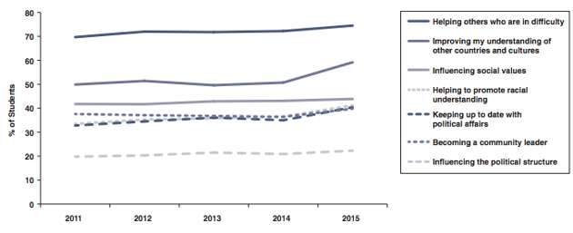 Increases in the Importance of Civic Engagement, 2011-2015