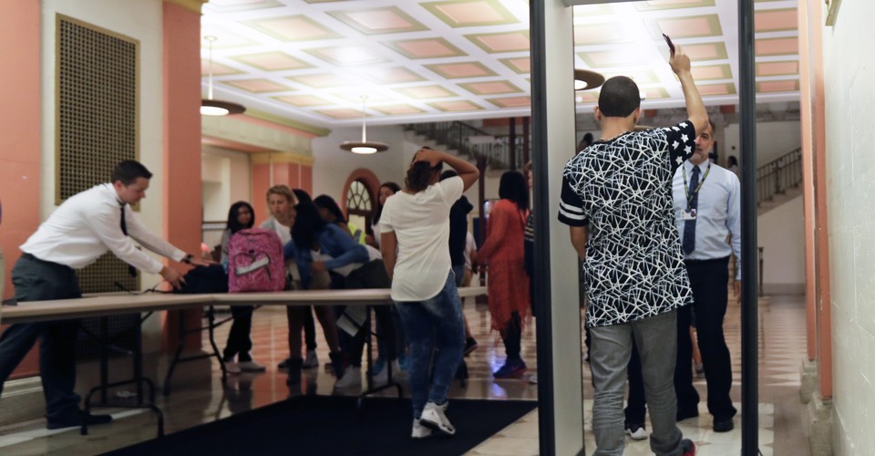 The increasing reliance on strict security practices has led activists and students in some large city school districts—where these methods are most commonly found—to push back against school environments where, as Noguera writes, “the fixation on control tends to override all other educational objectives and concerns.” A districtwide policy in Los Angeles to conduct random screenings with metal detector wands in all secondary schools (grades 6-12) has been in place for over two decades, yet concerns about the rule resurfaced in June, with local groups calling for the district to change its security procedures. Similarly in New York, the nation’s largest school district faces growing calls to remove metal detectors from schools.