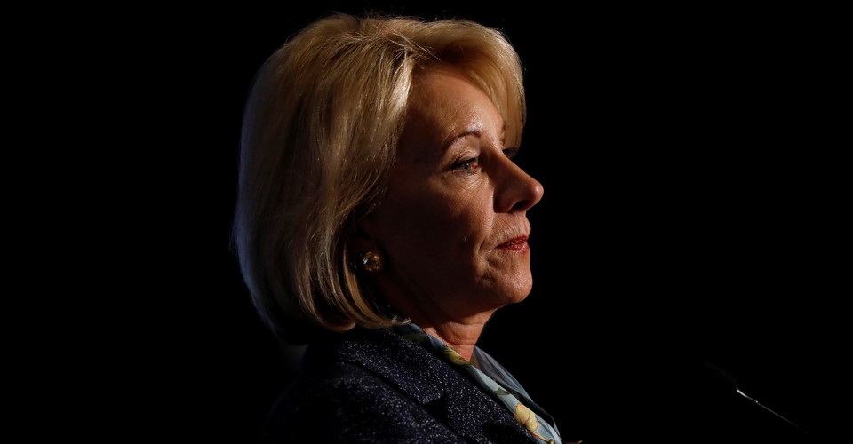 The brouhaha quickly came and slowly went, and aside from a few fiascos here and there, DeVos over time made fewer and fewer headlines. After all, she gave the media little to talk about, establishing a formidable barrier between herself and journalists, keeping public-speaking engagements somewhat to a minimum, and spearheading few newsworthy policy initiatives. And when she did make public appearances or announce regulatory changes, she typically stuck to talking points. None of this did much to warm her critics’ hearts, but she generally escaped the sort of ridicule and vitriol that had accompanied her initiation in Washington.