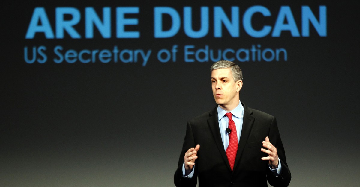 Duncan started his education career in Chicago as a tutor, mentor, and researcher at his mother’s after-school program for low-income, black youth on the city’s South Side, and eventually became the head of the city’s massive public-school system. He occupied that role for nearly eight years until 2009, when then-President Obama—whom he’d met through mutual friends years prior—tapped him as the country’s education secretary, bringing him to Washington, D.C., where he’d spend another seven years as one of the president’s longest-serving cabinet members. In 2015, Duncan, holding back tears, announced that he was resigning, marking the end of his leadership at the U.S. Education Department, a tenure marked by demanding reform initiatives—such as efforts to tie teacher pay to test scores, which took an immense toll on educators’ morale and garnered a lot of criticism. Hungry to spend more time with his family, Duncan returned to where it all started—Chicago’s South Side—and he’ll likely finish his education career there: Today, he’s at the helm of an anti-violence initiative called Chicago CRED that provides job training and positions to Chicago’s unemployed, out-of-school black men. (The CRED initiative was created in 2016 by the Emerson Collective, which now owns a majority stake in The Atlantic and at which Duncan is a managing partner.)