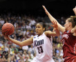 "And in the second half we can turn Maya Moore loose, let Tina Charles begin hitting that in-deep hook, and take Jayne Appel, Stanford's All-American center, outside the lane, where Charles hits a 15-footer or two."