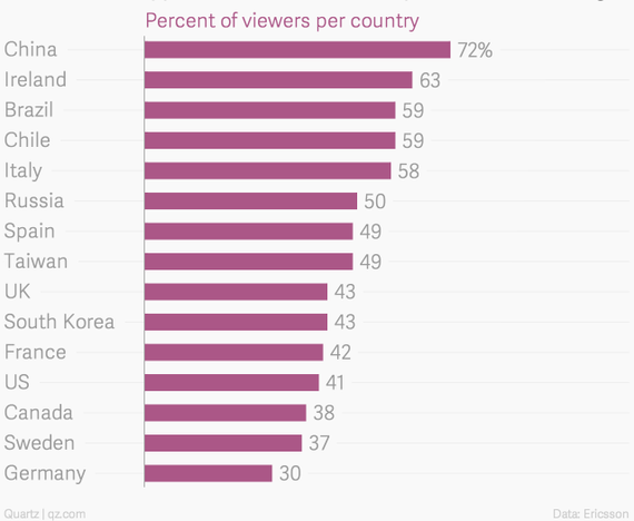 (Some of these numbers—Brazil, Chile, China, Russia, and Ireland—reflect only urban viewers.)