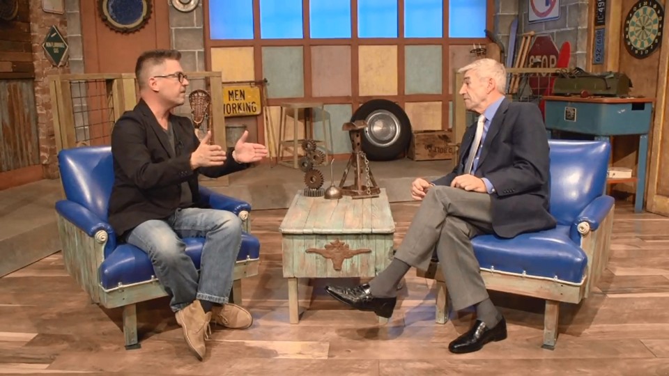 The host of The Flipside, Michael Loftus, says he’s doing the same thing as Jon Stewart, just with some conservative window-dressing. Wearing jeans, Loftus stands and delivers his jokes on a set that looks like the set of Tool Time, the fictional home-improvement show Tim Allen hosts on the sitcom Home Improvement: The walls are decorated with a dartboard, a “Men at Work” sign, and various other items the producers might expect to find in a typical American garage. In a recent episode, after Republicans won the Senate, Loftus sang the song, “Looks like we made it …” to celebrate the victory.