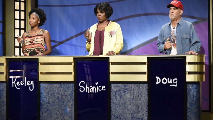 When Tom Hanks showed up in a “Make America Great Again” hat and bald-eagle shirt to play the contestant “Doug” this weekend, it seemed like the set-up for the ugliest culture clash yet. The 2016 election has been a reminder of the country’s profound racial fault lines, and SNL hasn’t exactly been forgiving toward the Republican nominee on that front: Its version of Trump hasn’t been able to tell black people apart, and it aired a mock ad painting his supporters as white supremacists—which, inarguably, some of them really are.