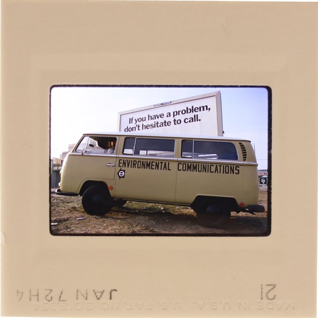 Marcos Sánchez and Mark Wasiuta, co-curators of a major Environmental Communications retrospective (on view now through April 1 at LAXART, a contemporary art space in Hollywood), say the captions accompanying the images were also extraordinarily different than what libraries would normally receive. Slide pamphlets included super-detailed descriptions of how people moved through the city, at varying scales: to different parts of a bus bench or from the shade of one tree to another; how someone acted in a crowd.