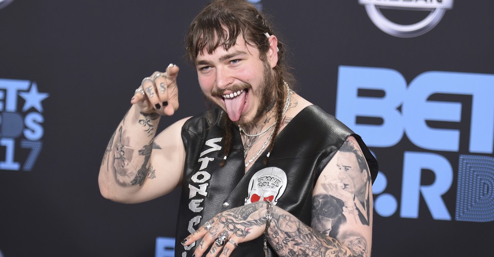 He is not, by many definitions, a rock star. He’s an R&B singer and rapper, making hazily melodic hits during a commercial boom for hip-hop. Of the 10 No. 1 songs that 2017 has produced, Billboard points out, half have been rap songs, and each of those has been the first Hot 100 conquerer by the artist that produced it (Migos, Kendrick Lamar, DJ Khaled, Cardi B, and now Post Malone). The last time a year saw five rap No. 1s was 2006, the era of Nelly, Sean Paul, and Chamillionaire.