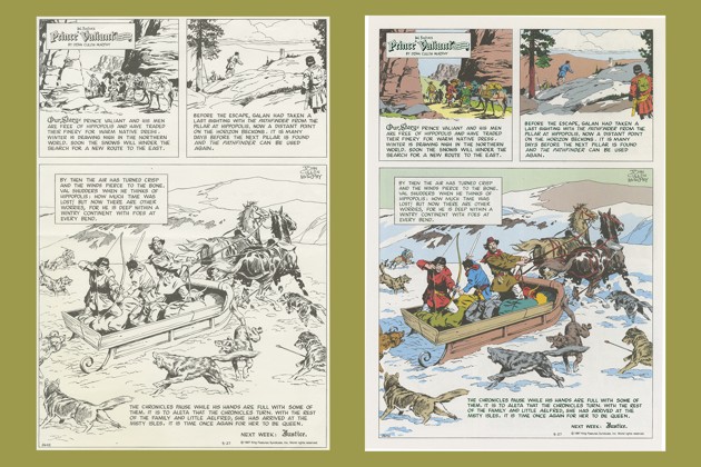 Murphy: I don’t believe they really did, overtly. In our own family, when I was writing Prince Valiant, a number of my brothers and sisters would come up with ideas for the strip. It’s the kind of thing we would talk about at dinnertime on occasion. “Such-and-such a character hasn’t been in the strip for a while—maybe we should do something about her or him. And what might that be?”