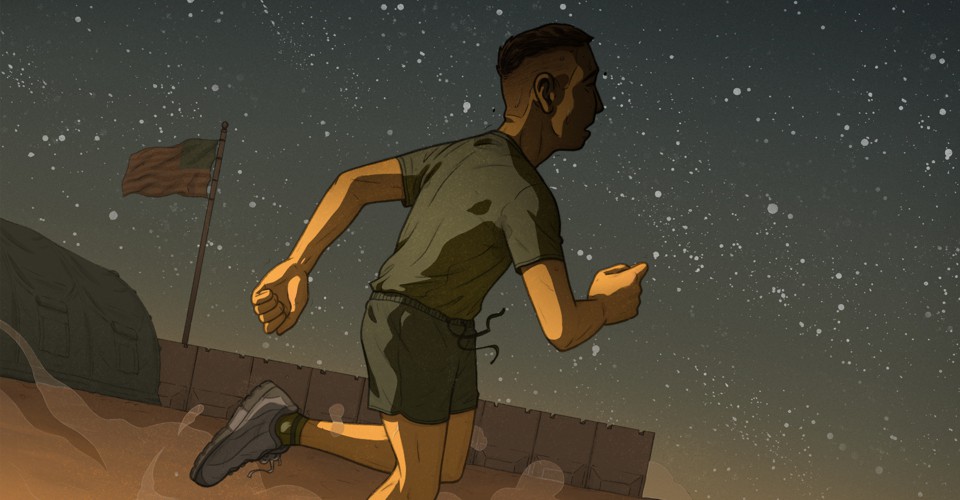 Leighton started running to get away from his nightmares. Almost immediately after returning to Yuma, Leighton began to wake up from graphic nightmares of his friends dying in the Middle East. In them, Leighton could catch the smell of burning flesh. He often would wake up from the violent nightmares covered in sweat and hyperventilating. He tried desperately to scrub off the dream’s burning-body smell. Afterward, he’d run on base in the middle of the night.