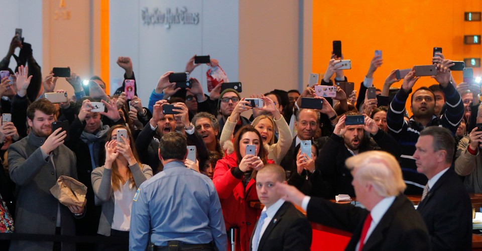 One of the minor characters of The Fourth Estate is Michael Barbaro, the host of the Times’ now-blockbuster podcast, The Daily; he asks the reporters—some of them apparently on deadline—to do for that show the same things they are doing for the documentary: performing as themselves. Barbaro talks with Emily Steel, who, with Michael Schmidt, another star of The Fourth Estate, won a Pulitzer this year for her reporting on the Bill O’Reilly sexual-harassment scandal at Fox News, asking her to elaborate on her reporting—to contextualize it for listeners. And to do that analysis in, quite literally, her own voice. Barbaro makes similar requests of many other reporters over the course of the documentary. As, in another way, does another key player in The Fourth Estate: Twitter. Not only are the show’s reporters constantly reacting to presidential tweets—the chirp of the Twitter bird serves as occasional interruption of the film’s action and score—but they are also, themselves, constantly tweeting. Sometimes the reporters are admonished by their editors for being too voicey, too intemperate, too much themselves. They are attacked by their detractors as biased, as agenda-ed, as having been fake news all along.