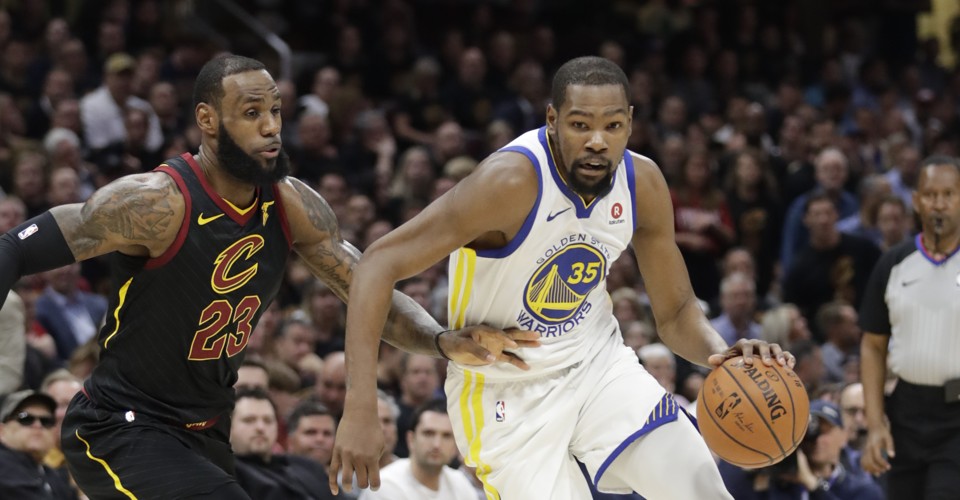 There were some moments of tension along the way—ones that enlivened an evening even if they didn’t put the ultimate result in doubt. In a back-and-forth Game 1, Cleveland had a chance to steal a victory on the Warriors’ court before J.R. Smith inexplicably opted not to try a last-second put-back attempt; the Cavaliers lost by 10 in overtime. Game 3 in Cleveland held its excitement into the fourth quarter, but Durant proved too much, scoring a playoff career-high 43 points and canning a long, victory-sealing three-pointer in the final minute. The other two entries were blowouts, with Golden State winning by a combined 42 points.