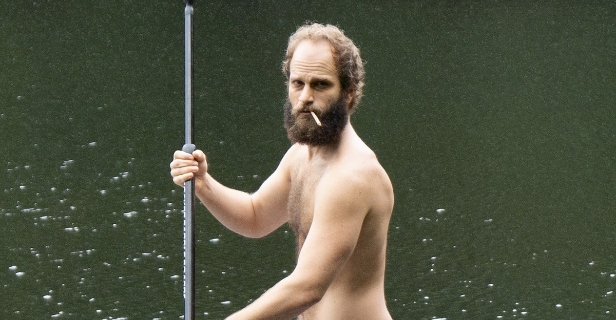 Increasingly, the voyeurism extends to the Guy himself. Sinclair’s supernaturally likable “beardo” plays a bit role in many of the episodes, a mere glue between pot-smoking characters who take center stage for a few minutes and then recede again. But in dribs and drabs over the years, the show has fulfilled fans’ desires to know more about him. Season 2 unraveled the circumstances of his marriage’s end—circumstances echoing that of the once-coupled Sinclair and Blichfeld—while subjecting him to physical and personal trials. Season 3 opens with the Guy living out of an RV in upstate New York for a summer. More specifically, it opens with him swimming in a river, wearing only skimpy purple shorts.