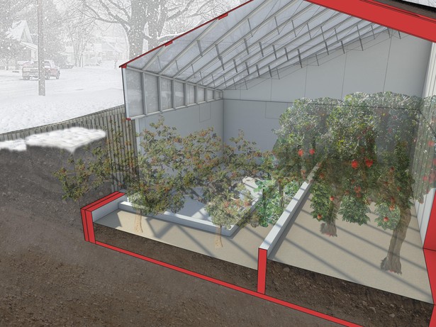 That’s fitting, because the structure’s future inhabitants will include species that can’t usually weather Michigan winters, like fig trees 4 [see 7 ]. With the help of his design collaborative, archolab, Mankouche—a professor at the University of Michigan—is building a sunken greenhouse he calls Afterhouse 5, which he hopes will serve as a prototype for other projects across the city and beyond.