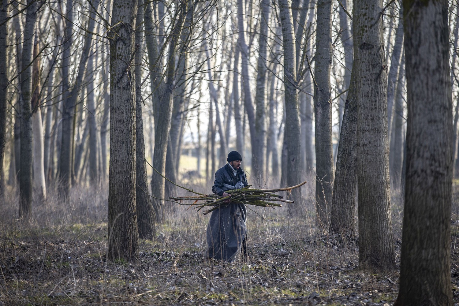 22. Migrants gather firewood near the Evros river in Edirne, Turkey, as they continue to attempt to reach Greece on March 2, 2020.