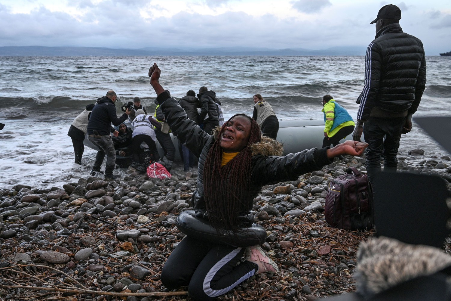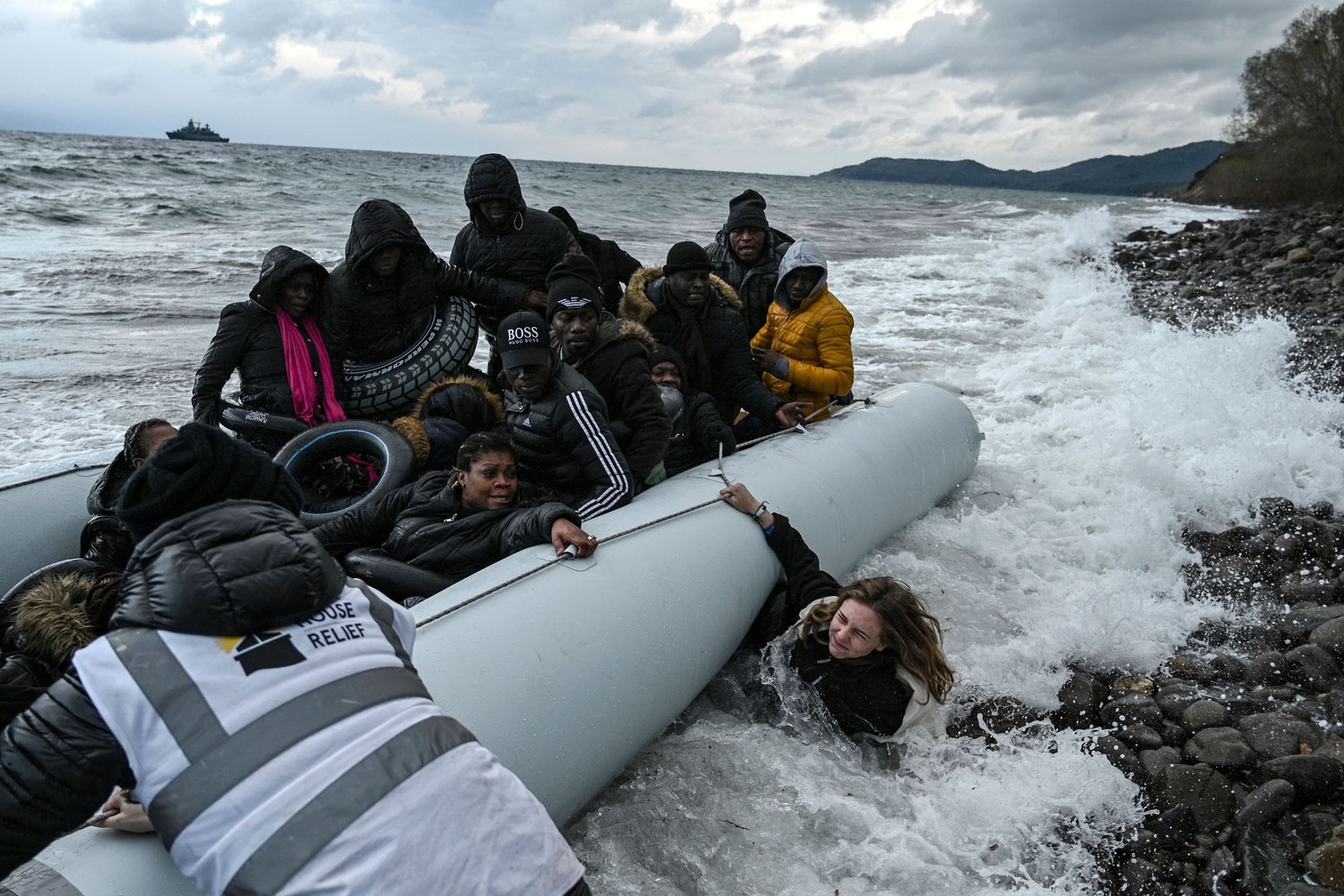 7. A boat transporting 27 refugees and migrants originating from Gambia and the Republic of the Congo lands in Lesbos on February 29, 2020, after the passengers were rescued by a warship during their sea crossing between Turkey and Greece.