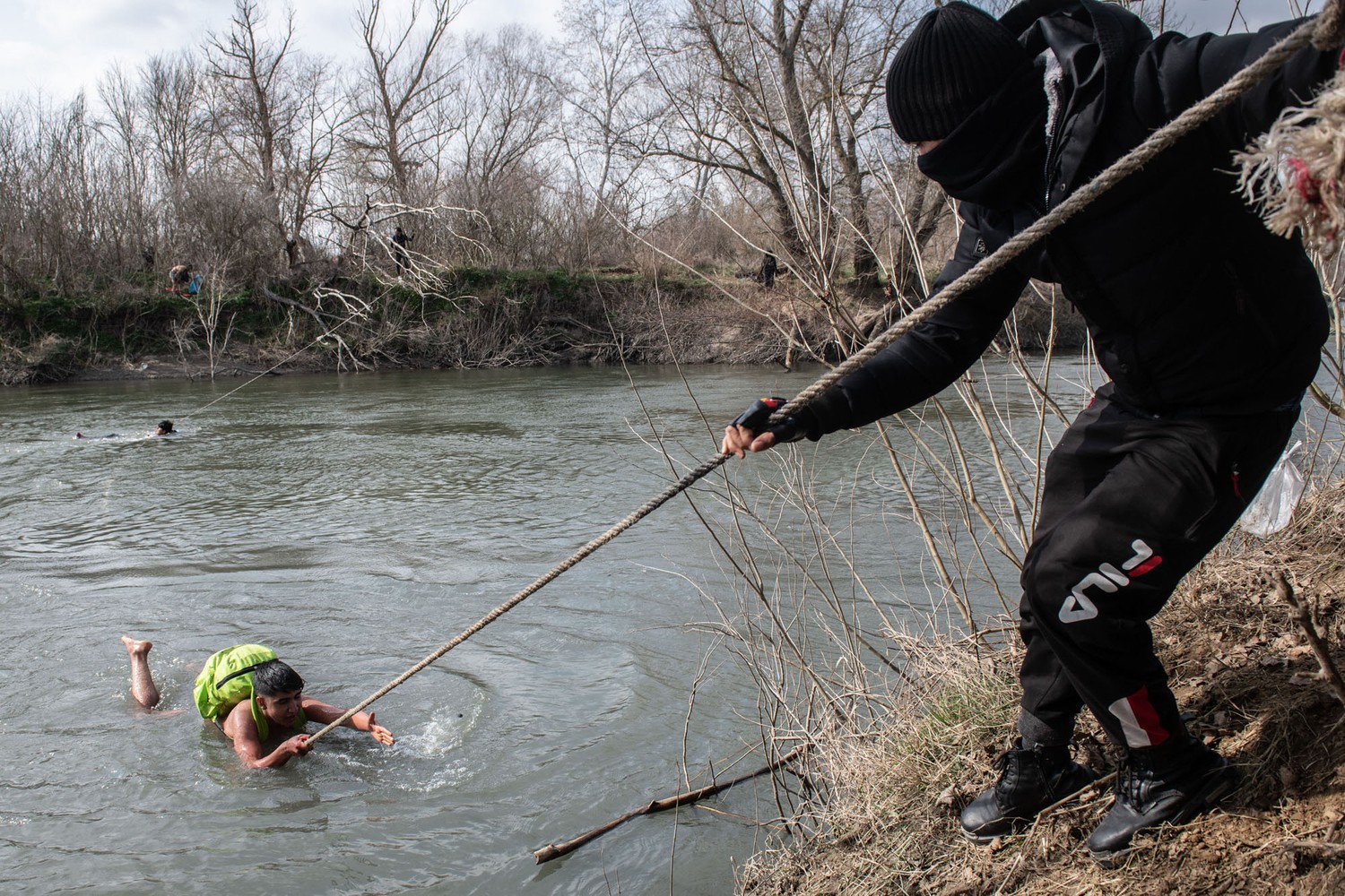 27. Refugees and migrants are rescued from an island in the middle of the Evros river on March 1, 2020, after becoming stuck for two days when they tried to cross from Turkey to Greece.
