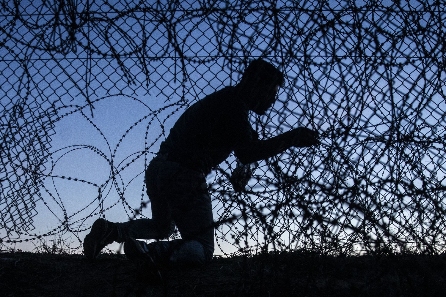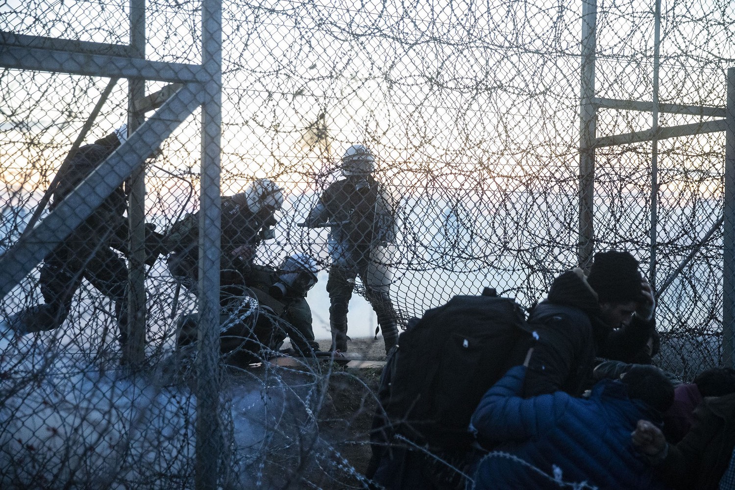 16. A migrant crosses the border under barbed wire following Greek border guards' intervention with tear-gas canisters and stun grenades in Edirne, Turkey, on March 1, 2020.