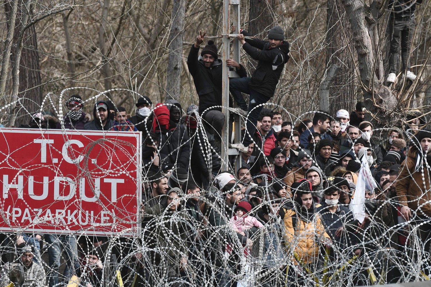 12. Migrants gather at the Pazarkule border crossing in Edirne, Turkey, on February 29, 2020.