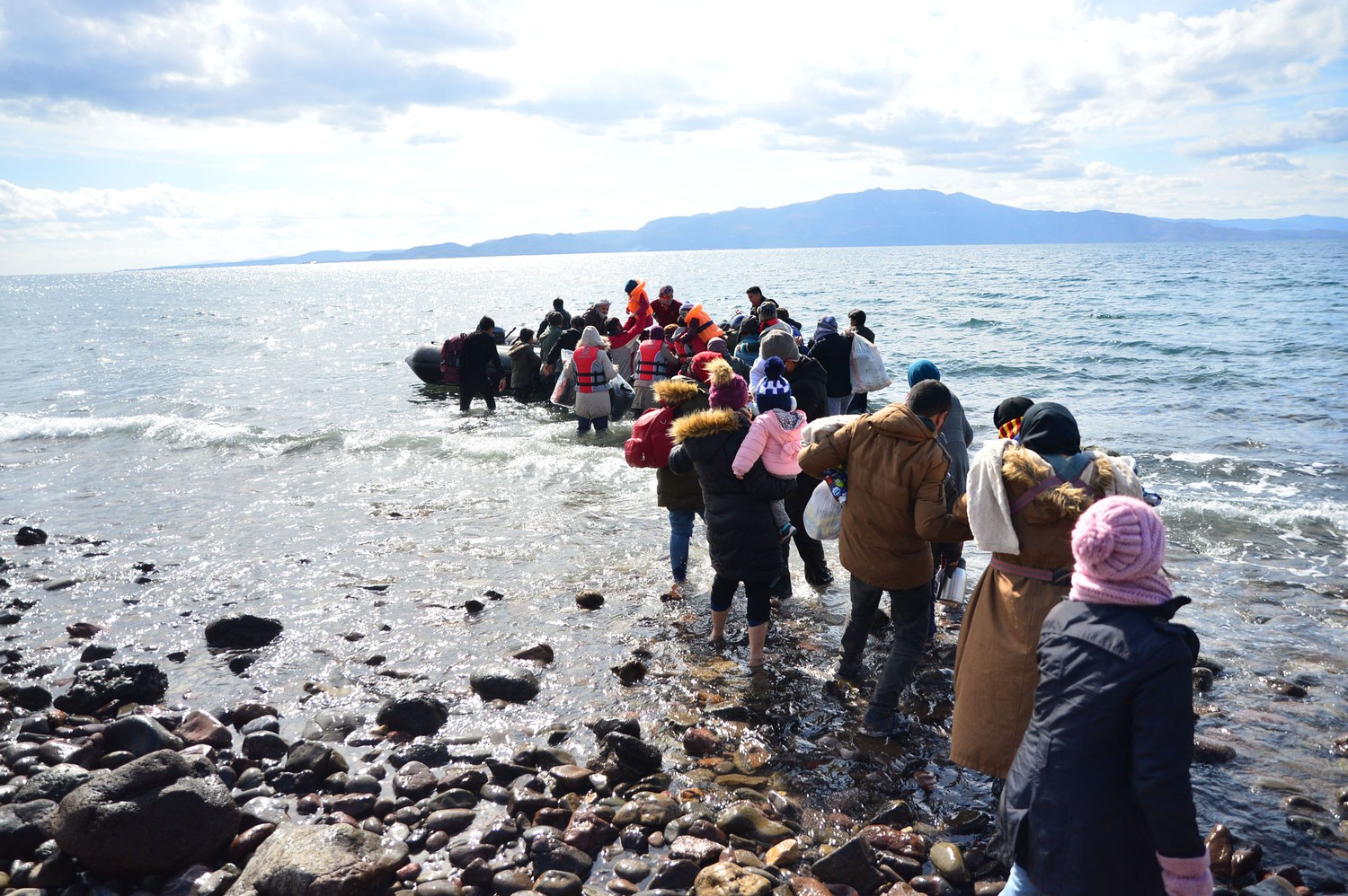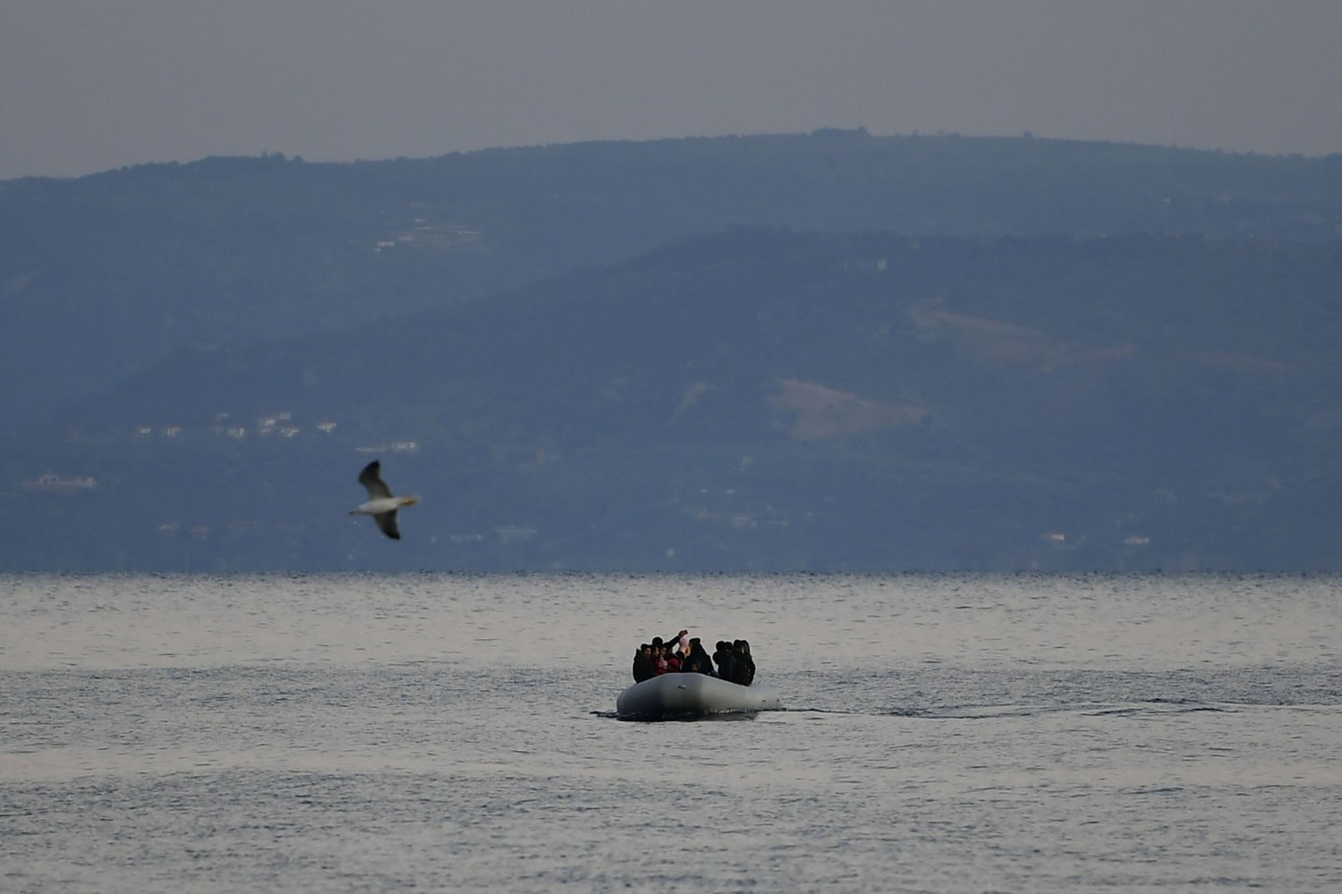 6. Migrants approach the village of Skala Sikamias on the Greek island of Lesbos while crossing from Turkey on March 2, 2020.