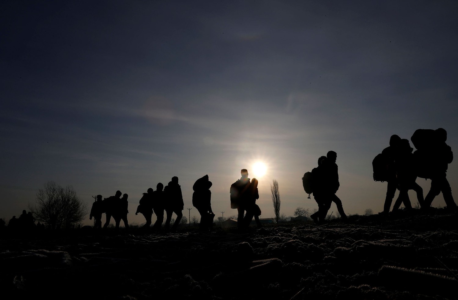 9. Migrants walk to Turkey's Pazarkule border crossing on February 28, 2020.